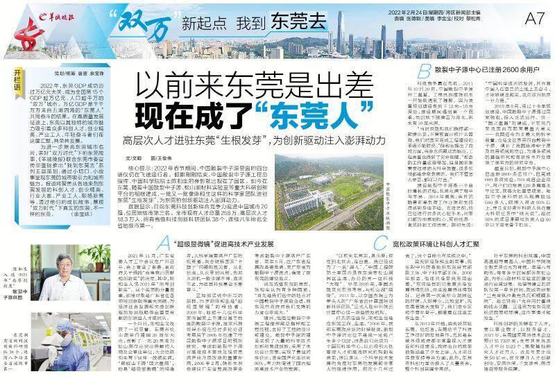 开栏语:2022年,东莞GDP成功迈过万亿元大关,成为全国第15个GDP超万亿元、人口超千万的“双万”城市。万亿GDP是千千万万来自五湖四海的“东莞人”共同奋斗的结果。在高质量发展征途上,东莞以其独特的城市魅力吸引着众多科创人才、创业精英、产业工人、年轻奋斗者们在这里汇聚,共荣共发展。