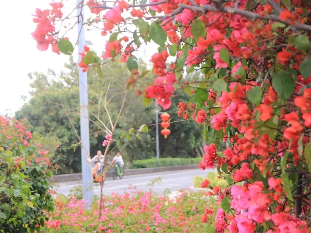 春风拂过东江之滨,万江街道滘联社区正丫湾河堤悄然换上了绚丽的春装,黄花风铃木金黄灿烂,紫荆粉若云霞,三角梅热烈如火,木棉花傲立枝头……黄、白、红、粉的花朵在一片新绿的掩映下恣意盛放,把绵延数里的河堤装扮成一条“花漾长廊”,成为社区居民和游客踏青赏春的宝藏去处。